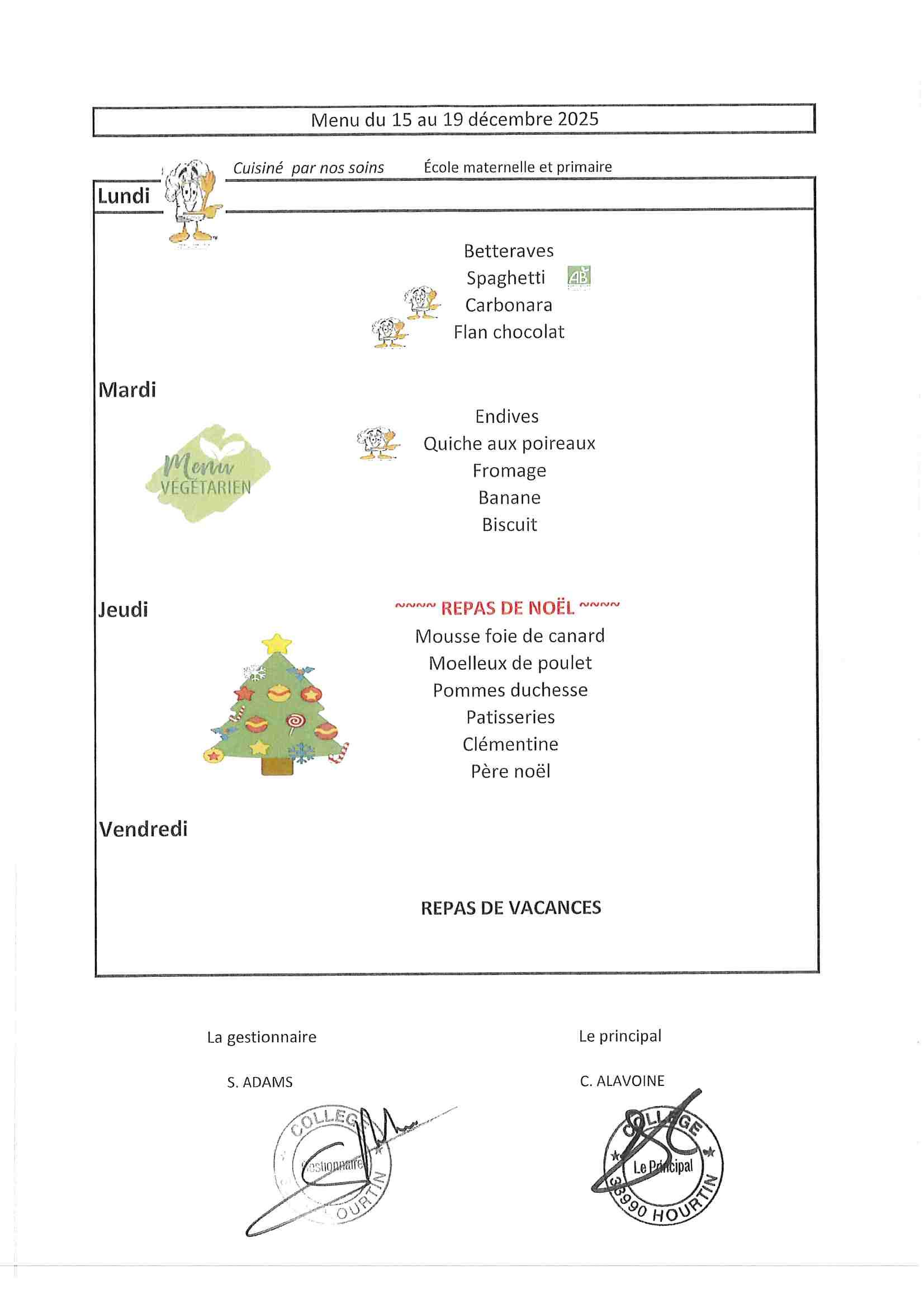 Menu de la semaine