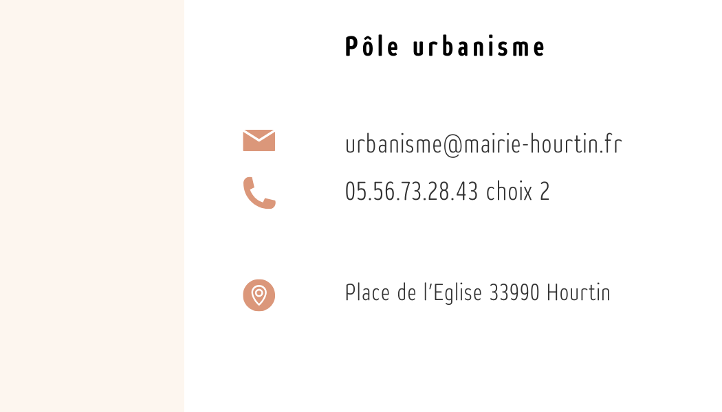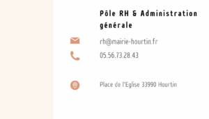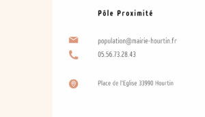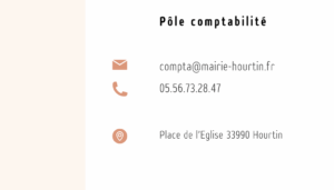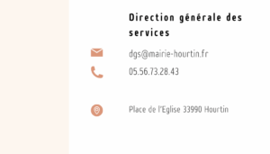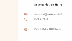 Mairie de Hourtin - Place de l'Eglise - BP 26 - 33990 HOURTIN Tél. 05 56 73 28 43 / Lundi, Mercredi et Jeudi : 9h00-12h et 15h-17h Mardi : 9h00-12h Vendredi : 9h00-12h et 15h-17h (permanence 17h-18h)