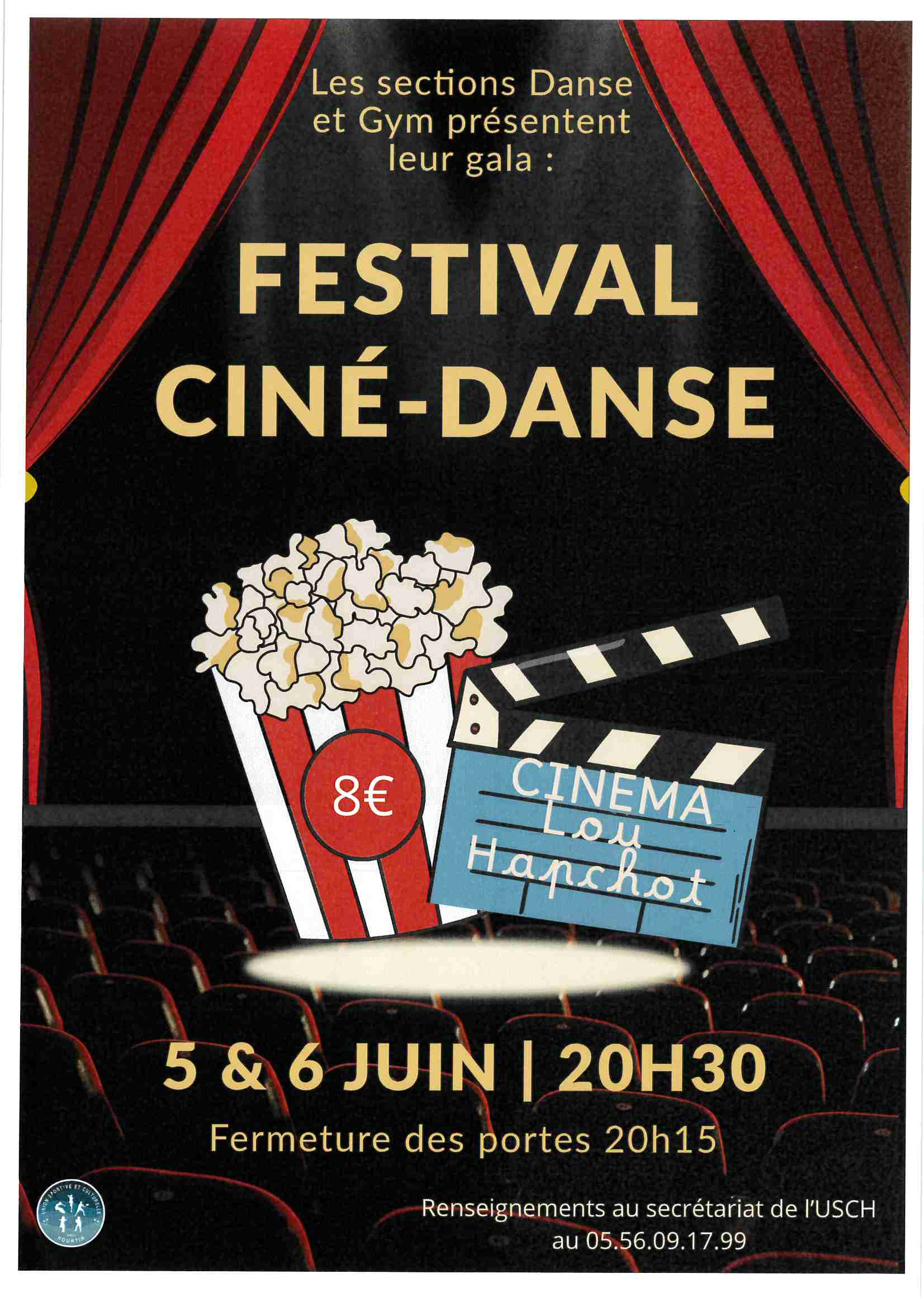 Comme chaque année, les élèves des sections Gym et Danse de l'USCH présentent leur Gala de fin de saison. Cette année, les sections ont choisi de mettre en valeur les musiques de films et comédies musicales, dans une ambiance "Festival de Cannes". Grâce au dynamisme des professeures, ce spectacle promet un bouquet de créativité, d'originalité et de performances.