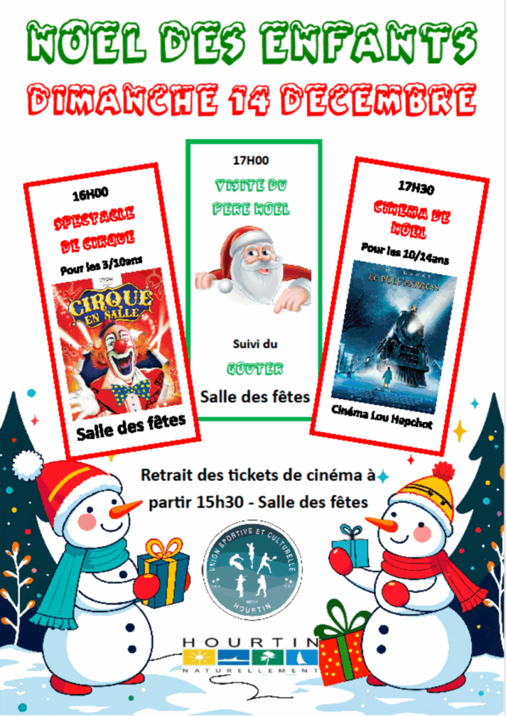 🎬 17h30 : Cinéma de Noël (10–14 ans) – Tickets à retirer sur place dès 15h30.